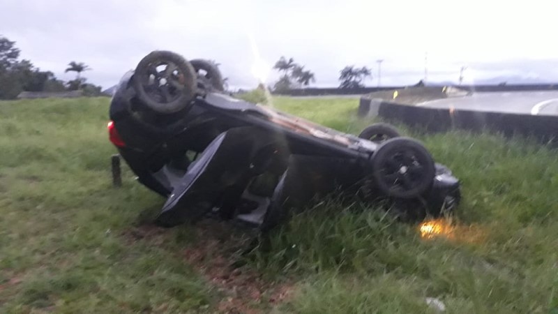 Automóvel capota no trevo de acesso à Garuva, da BR-101