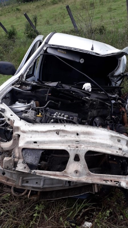 No mesmo lado, também na ribanceira, mas a certa distância do caminhão, encontrava-se o automóvel Renault Kangoo também de cor branca e com placas Brasil, que não indica o município. O condutor, um homem de 42 anos, encontrava-se encarcerado no interior do veículo e já em óbito, com diversas fraturas. Seu corpo foi desencarcerado e o veículo lavado devido à grande quantidade de combustível vazado (veículo possuía GNV). A pista também precisou ser lavada devido à grande quantidade de fragmentos da colisão.