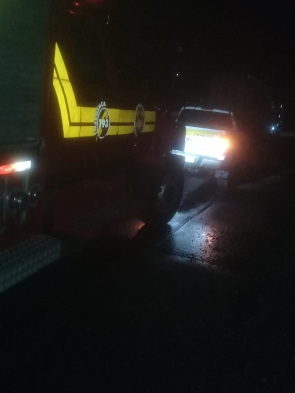 No local, os bombeiros confirmaram que se tratava de uma colisão traseira envolvendo dois caminhões e uma vítima ferida. Tratava-se do motorista do veículo Scania 2536 de cor branca que bateu na traseira do Iveco 360 também branco. O homem ferido, de 43 anos de idade, encontrava-se em pé, consciente e orientado. Em uma avaliação inicial, os bombeiros constaram que ele apresentava escoriações nas costas, no braço direito e na perna direita com suspeita de fratura neste membro. Além disso, apresentava um corte na cabeça.