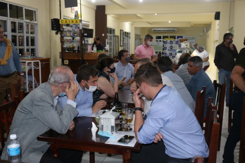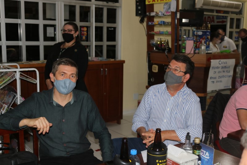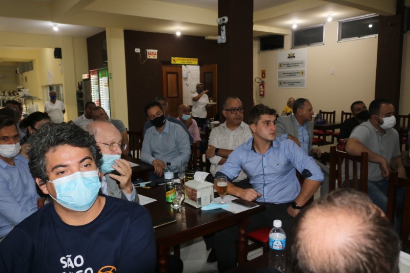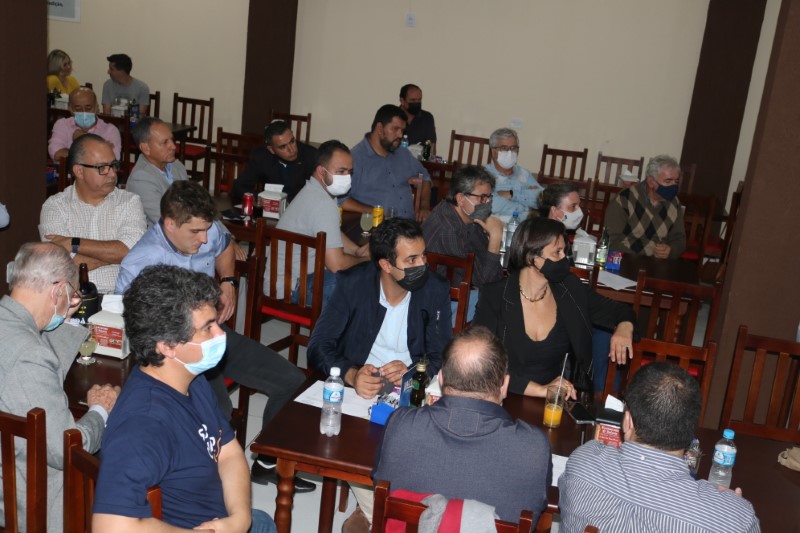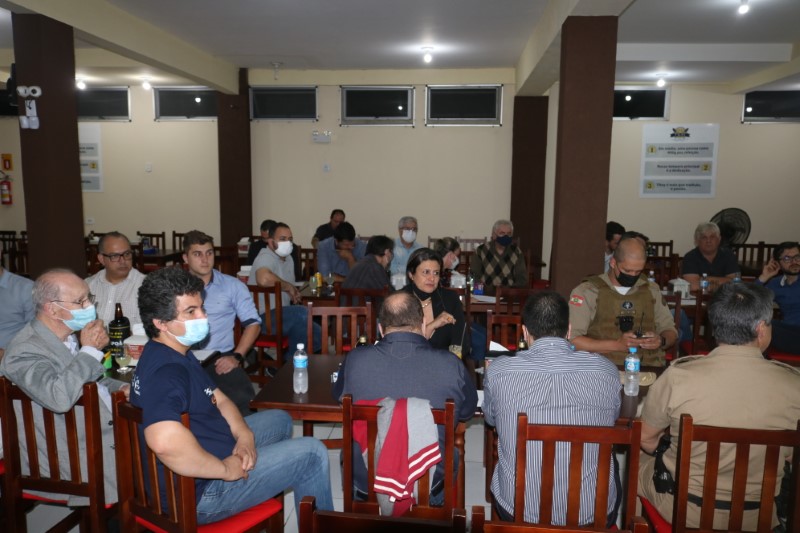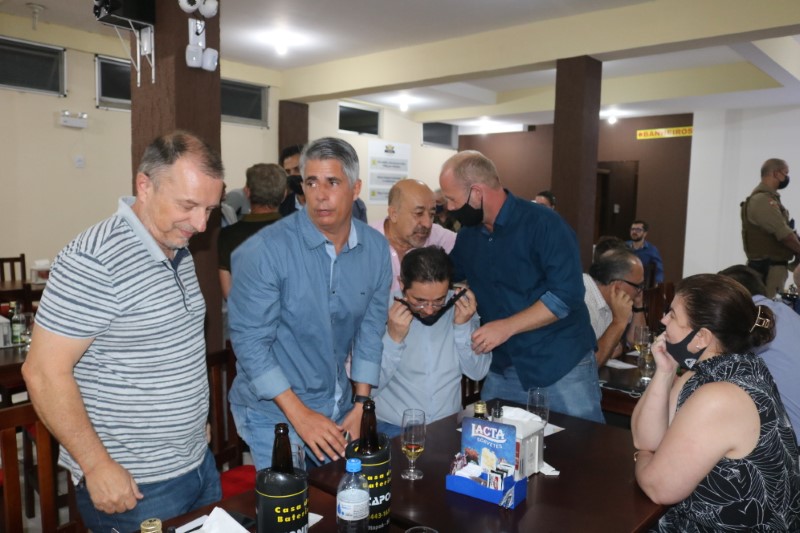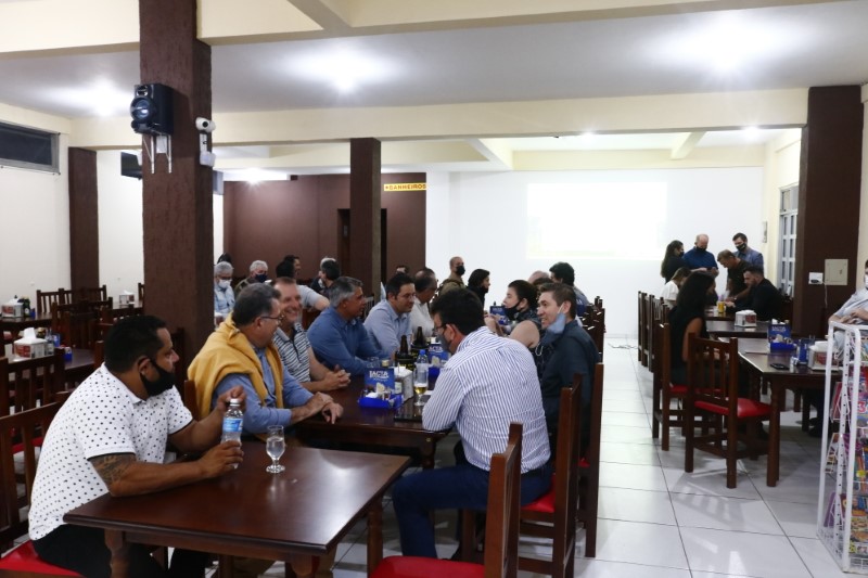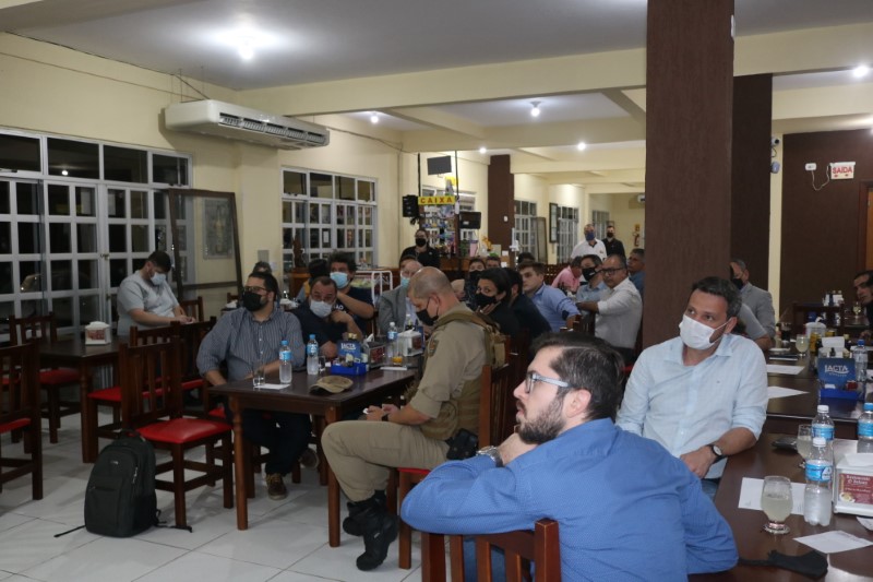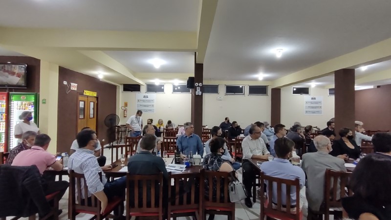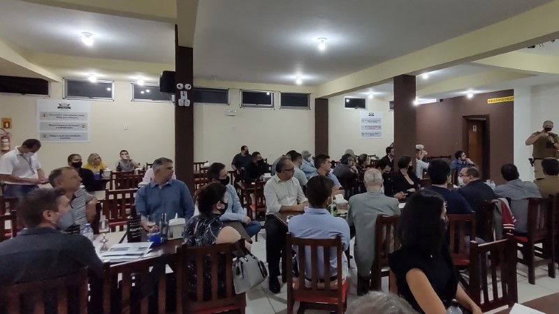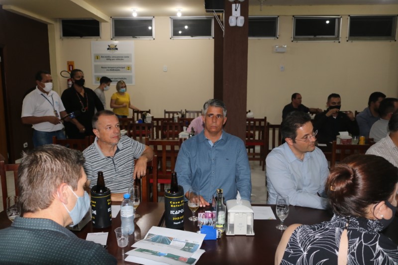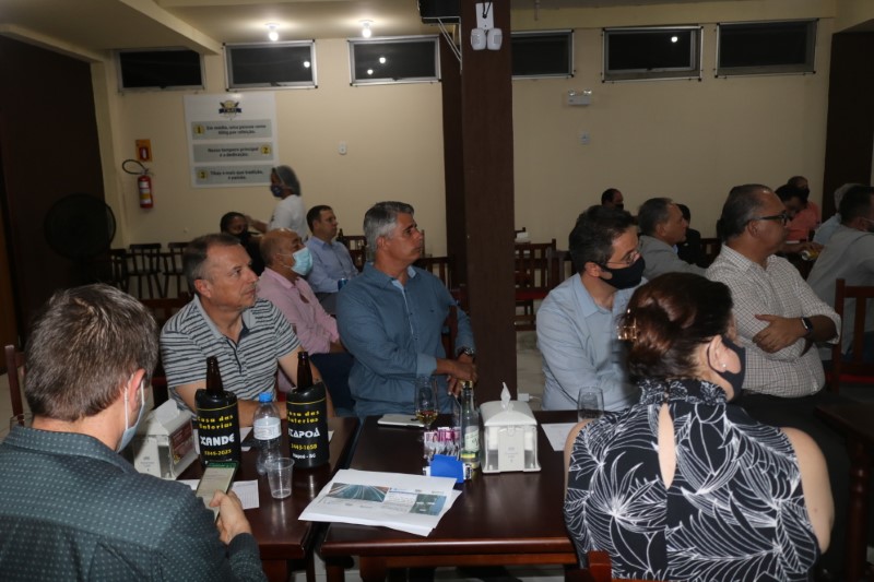 Na noite dessa terça-feira, dia 28 de setembro de 2021, o Restaurante Tikay, em Itapoá, foi sede de uma reunião de executivos e presidentes das associações empresariais da Regional Norte de Santa Catarina. O evento, que teve como anfitriã, a Acini (Associação Comercial e Industrial de Itapoá), contou com a participação de diversas autoridades e empresários, entre os quais, o vice-presidente da Regional Norte da Facisc (Federação das Associações Empresariais de Santa Catarina), Alcidir Boaretto; o presidente da Acini, Alberto Machado; o gerente de Projetos da Secretaria de Estado de Infraestrutura de Santa Catarina, Wilson Tadeu Besen; o comandante do 8º Batalhão de Polícia Militar de Santa Catarina, Tenente coronel Celso Mlanarczyki Junior; o comandante do Pelotão da Polícia Militar de Itapoá, Capitão Richarlysson Lima; o gerente de Projetos da Azimute Engenharia, Vander Piske; e a presidente da ACIAC (Associação Empresarial de Corupá), Debora Tomelin.