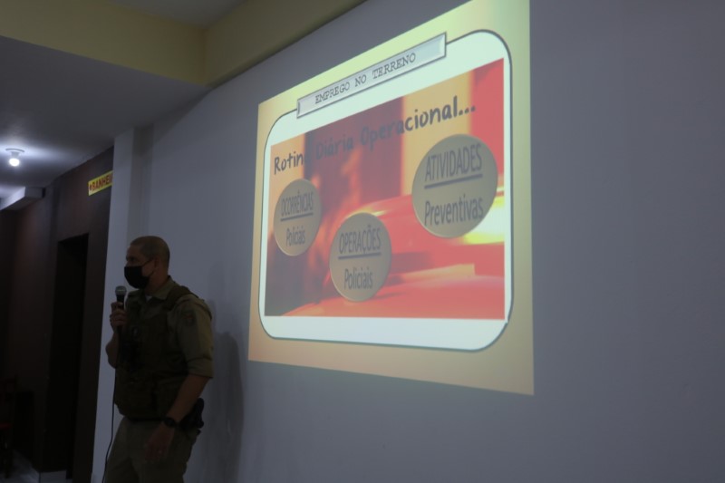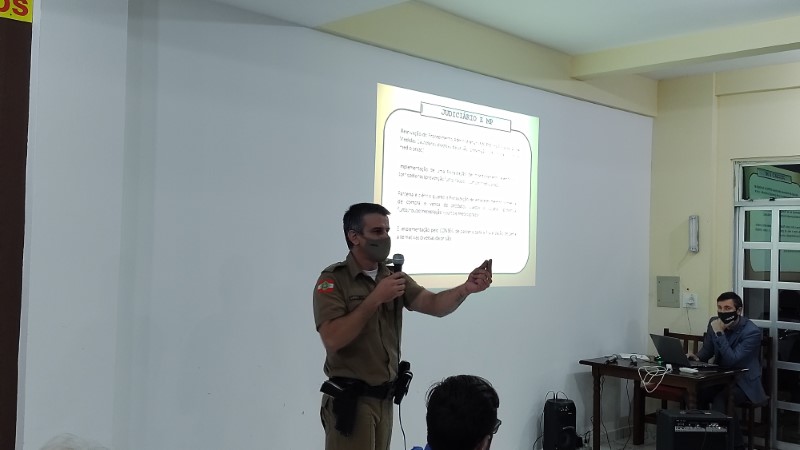 Em seguida, o comandante da PM de Itapoá, Capitão Lima, mostrou mais alguns índices da segurança pública no Município. Ele reforçou a fala de seu superior hierárquico, em relação à realização de muitas prisões na Cidade, mas geralmente relacionadas a reincidências nos crimes.