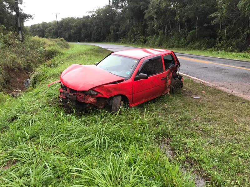 O condutor foi imobilizado com colar cervical e encaminhado ao PA (Pronto Atendimento) 24 Horas de Itapoá.