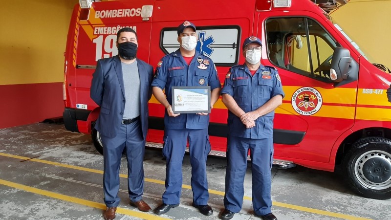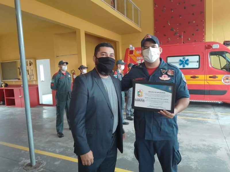 Na manhã dessa quinta-feira, dia 28 de outubro, o Corpo de Bombeiros Militar em Garuva realizou solenidade de formatura de entrega de viatura auto socorro de urgência e de moção de aplausos da Câmara de Vereadores local aos bombeiros militares e comunitários da Cidade.