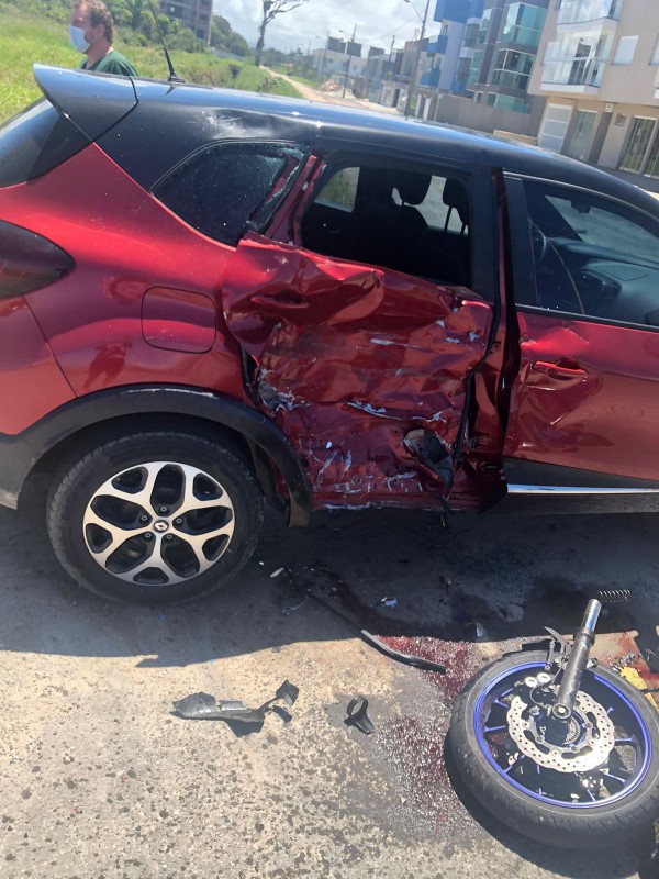 Colisao entre automovel e motocicleta deixa duas pessoas feridas no balneário Rainha 1 (Tribuna de Itapoa)