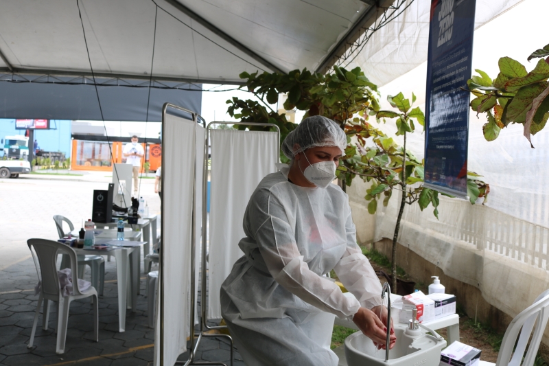 Secretaria Municipal de Saúde com teste de Covid, Glicemia, Aferição de Pressão Arterial, e Campanha de Combate à Dengue.