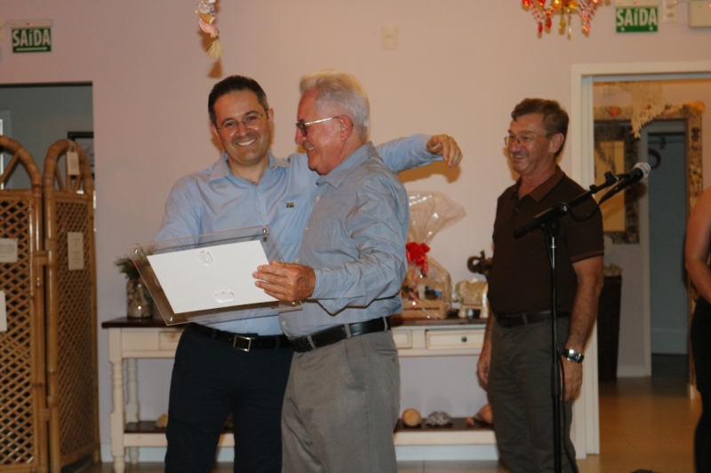 A noite de excelente experiência gastronômica, teve início com uma série de homenagens, entre as quais, os ex-presidentes da Associação foram lembrados. Inclusive, o primeiro deles, justamente Ervino Sperandio, pai de Jerry Sperandio, que assume agora essa função.