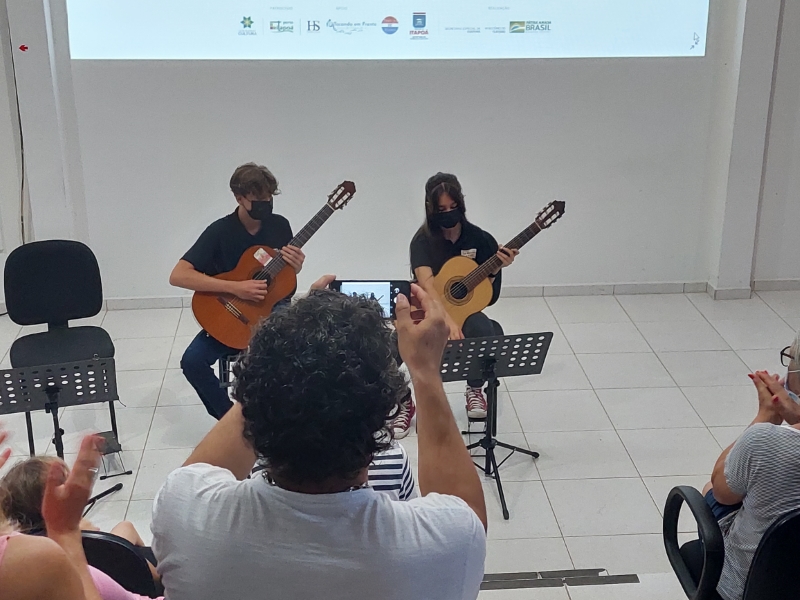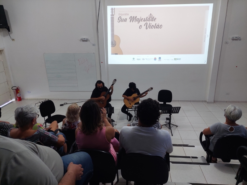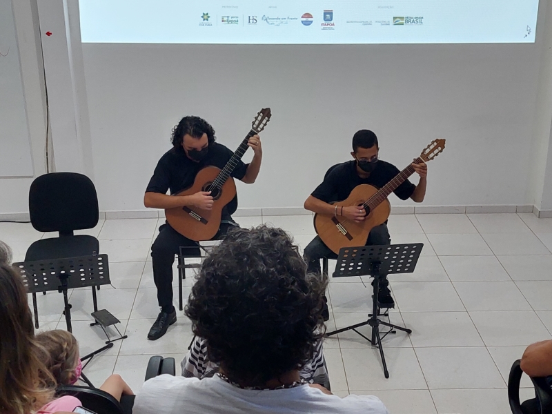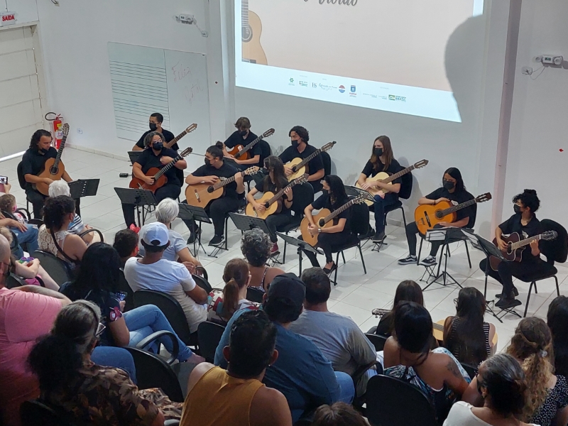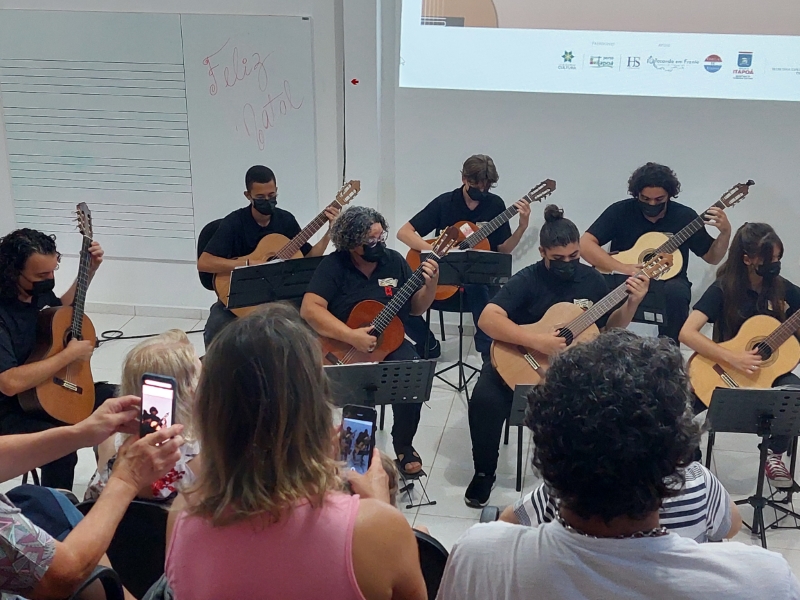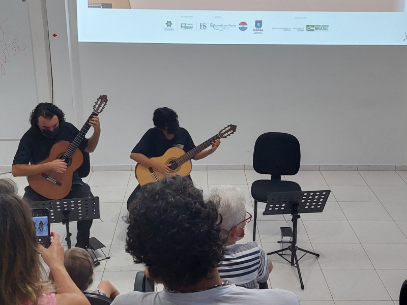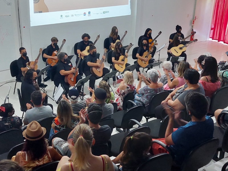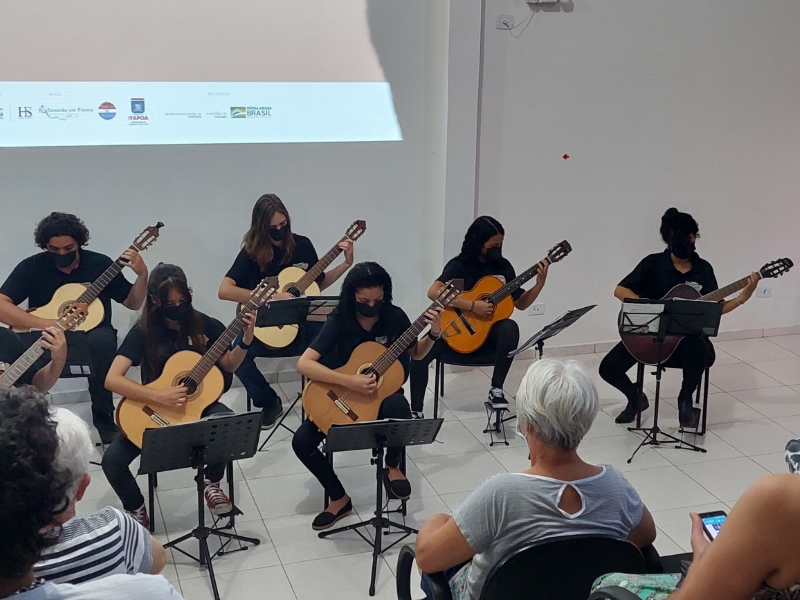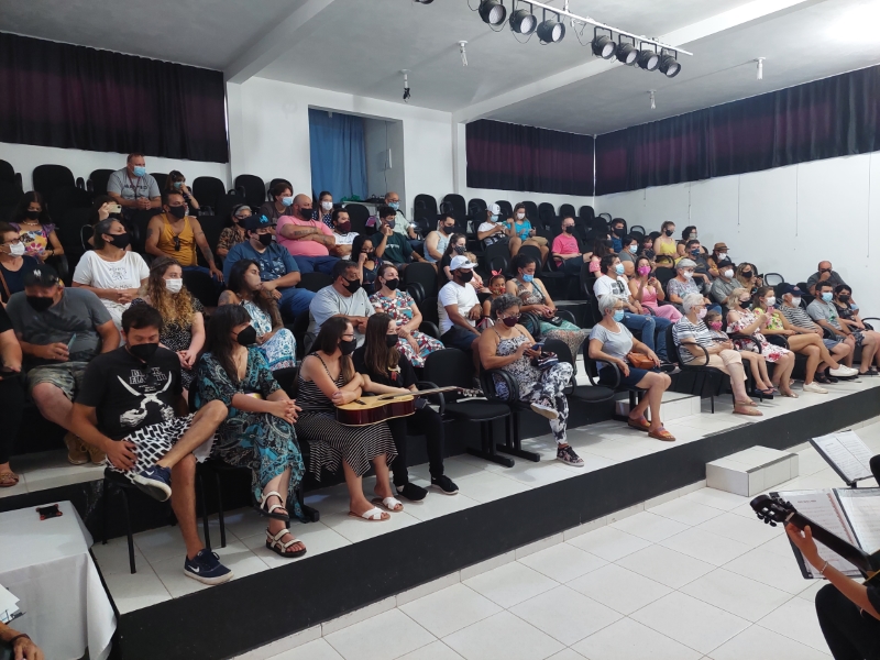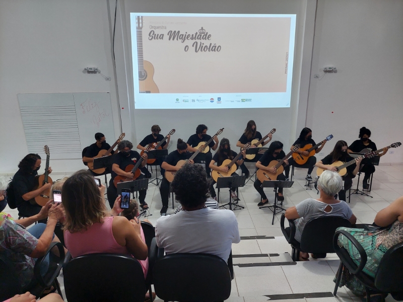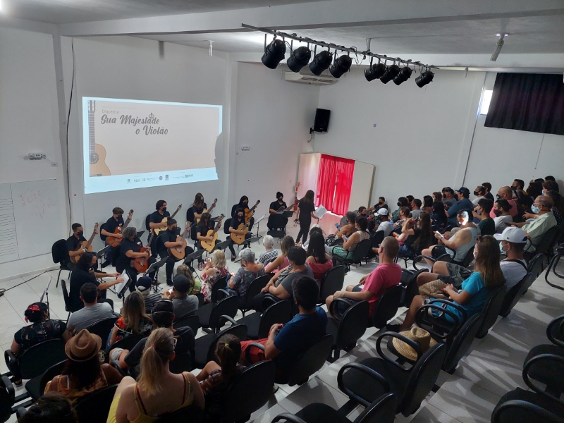 Na manhã deste domingo, dia 05 de dezembro, a Casa da Cultura de Itapoá foi sede da apresentação que marcou o encerramento das atividades da Orquestra Sua Majestade o Violão neste ano de 2021. Um excelente público prestigiou o belo espetáculo dos violonistas que integram o grupo. Sob muitos aplausos, também houve apresentação dos músicos em trio e duos.