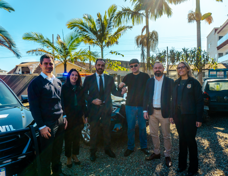 Na manhã desta terça-feira, dia 13 de junho, uma solenidade realizada na Delegacia de Polícia Civil de Itapoá marcou a entrega das chaves das duas novas viaturas recebidas pela instituição policial local. O delegado regional da Polícia Civil de Joinville, Rafaello Ross, foi quem realizou as entregas dos veículos Hyundai Creta diretamente aos delegados Saul Bogoni Júnior (titular de Itapoá) e Milena de Fátima Rosa.