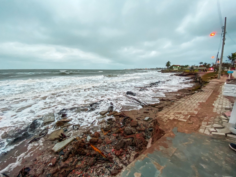 Ressaca pós-ciclone atinge imóveis e destrói vias em Itapoá
