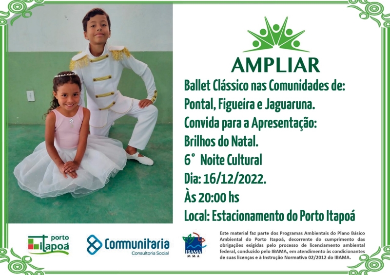 O evento, que é gratuito e aberto a toda a comunidade, também contará com a presença do Papai Noel. Serão duas noites imperdíveis de muita magia e espírito natalino e todos estão convidados a participar e trazer suas famílias. O espetáculo é uma realização do Porto Itapoá e Ministério do Turismo, via Lei de incentivo à Cultura do Governo Federal.