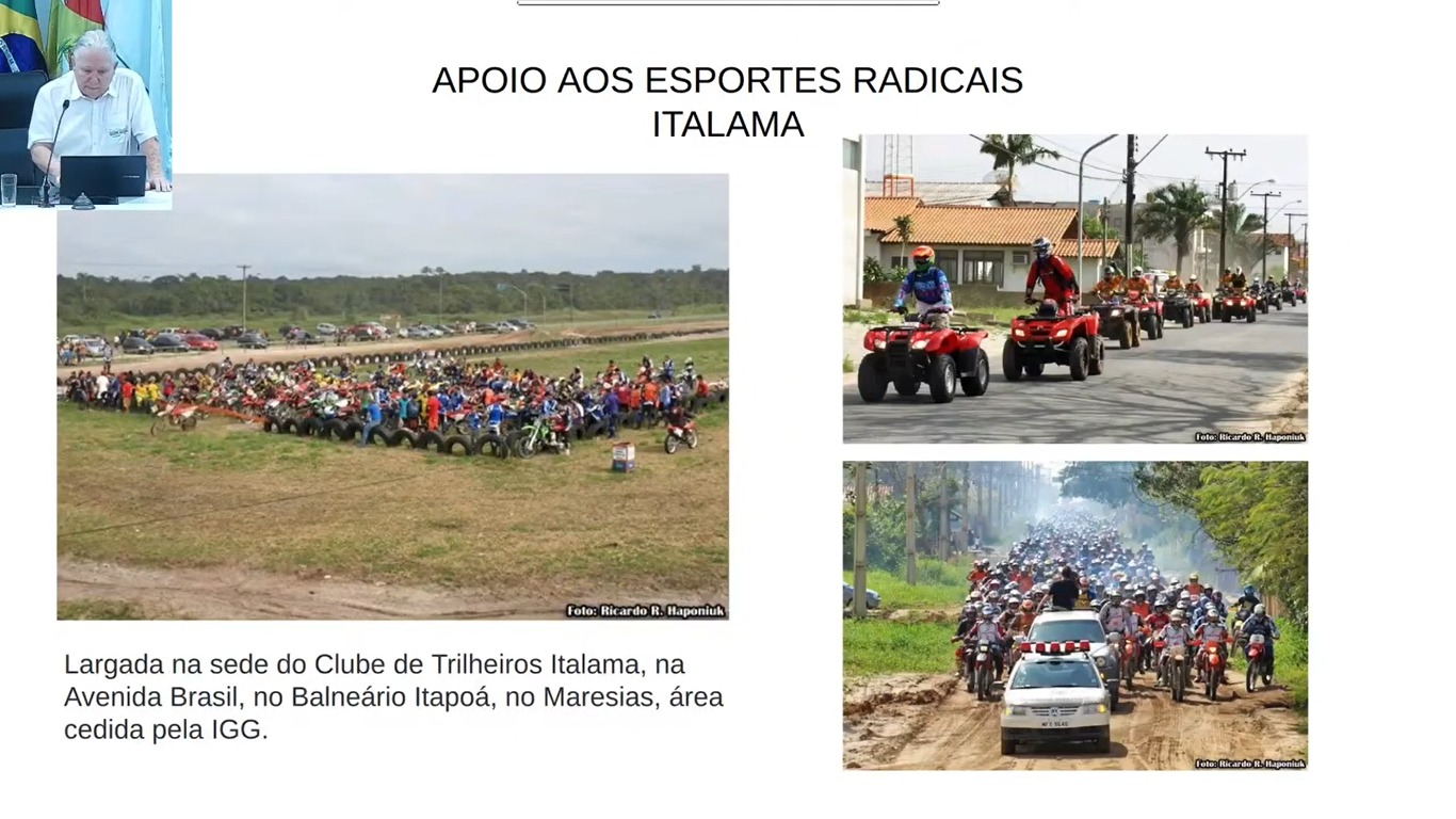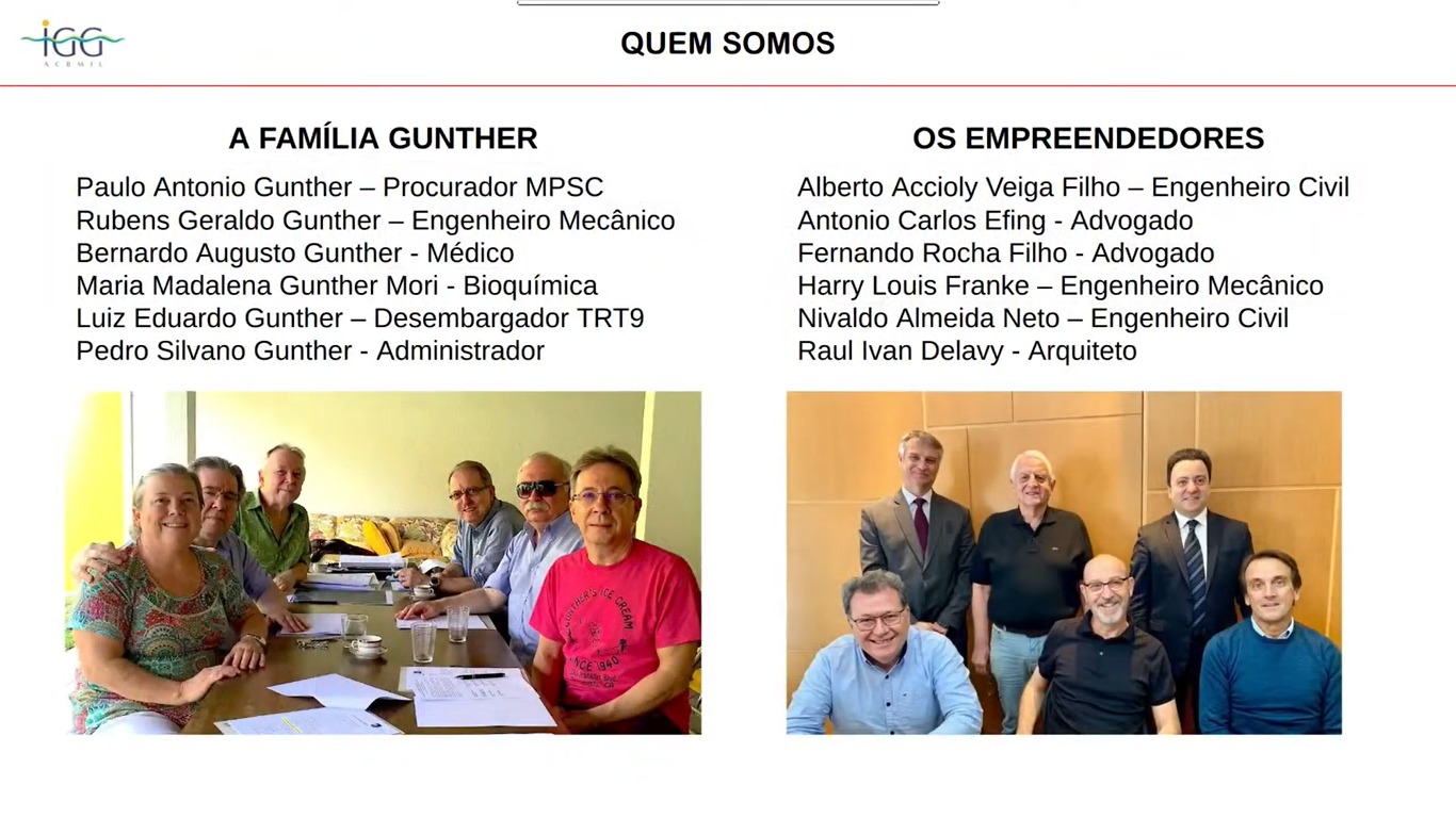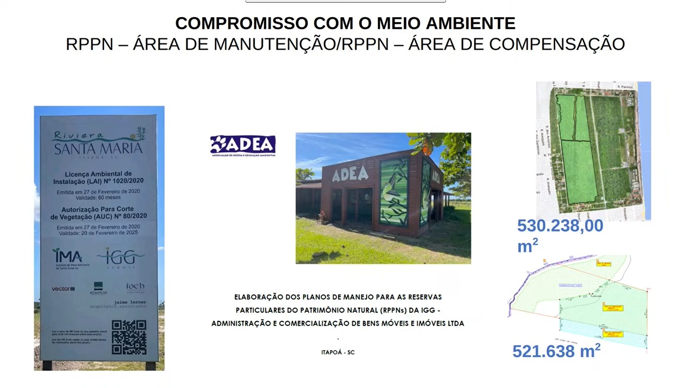 Pela IGG, empresa proprietária da área e responsável pelo empreendimento, pronunciaram-se Rubens Geraldo Gunther e Harry Louis Franke. Rubens fez uma introdução sobre assunto, citando que o objetivo do encontro era dar satisfação à população de Itapoá sobre todo o trabalho desenvolvido nos mais de dez anos de projeto, que teve início em 2011 e agora está na fase conclusiva, com as emissões das matrículas imobiliárias previstas para ocorrerem ainda neste mês de abril. De acordo com o Rubens, esse é um passo decisivo e a partir do qual poderão ser desenvolvidos a instalação da infraestrutura e eventuais negócios imobiliários que estarão autorizados a terem início. Foi também Rubens, o responsável por contar a história do empreendimento com Itapoá, que tem início pela década de 1950, quando seu pai Geraldo Mariano Gunther esteve entre os desbravadores da cidade. No encerramento de sua fala, Rubens também citou os compromissos do empreendimento com a comunidade itapoaense, sempre apoiando projetos de entretenimento, de esporte e de cultura, entre outros no âmbito do município.
