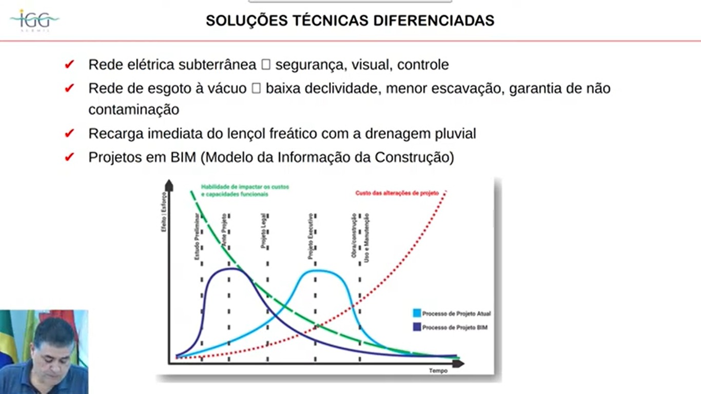 Rovane França, engenheiro da empresa Vector, que responde pela parte de infraestrutura do empreendimento, falou dos desafios para a erngenharia, mostrando os detalhes do projeto da Riviera Santa Maria. Ele citou os típicos problemas de ocupações à beira mar, todos relacionados com planejamento e drenagem, e em seguida, as soluções adotadas na Riviera, algumas delas bastante diferenciadas.