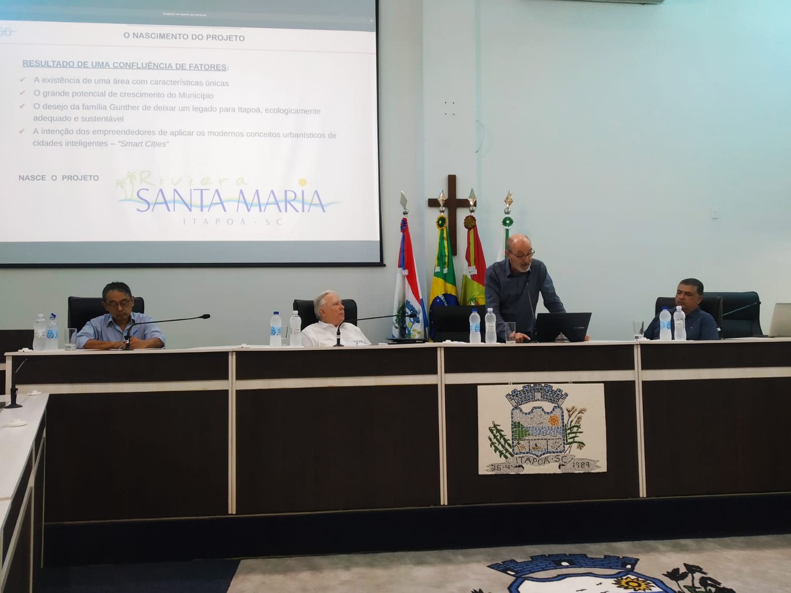 Na tarde dessa quarta-feira, dia 05 de abril, a Câmara Municipal de Itapoá foi sede de uma apresentação sobre a Riviera Santa Maria, importante projeto urbanístico que está sendo implantado no Município.