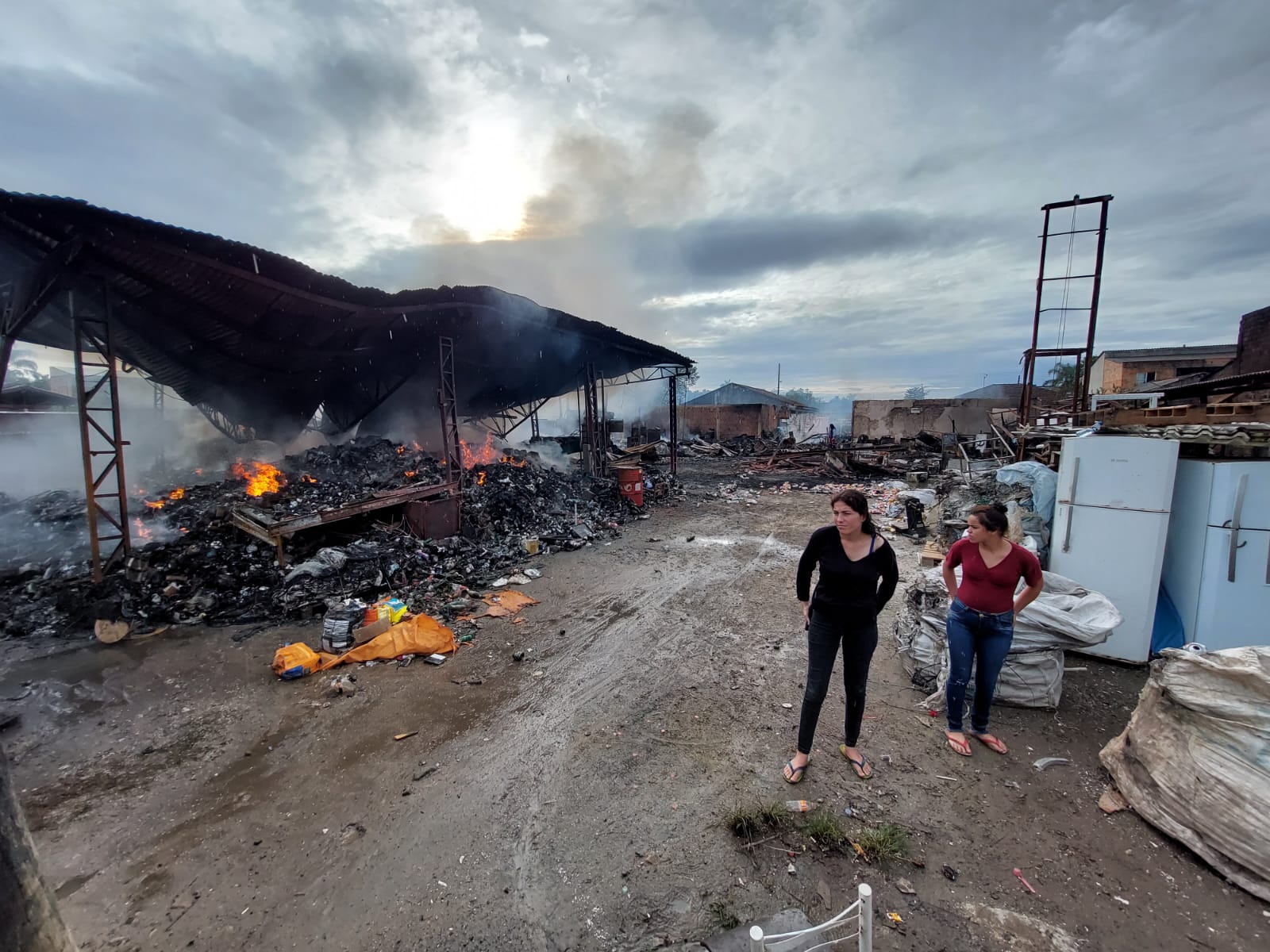 Um incêndio de grandes proporções atingiu, na noite dessa terça-feira, dia 25 de abril, o depósito de materiais recicláveis da Associação dos Catadores de Itapoá, que fica no bairro Samambaial.