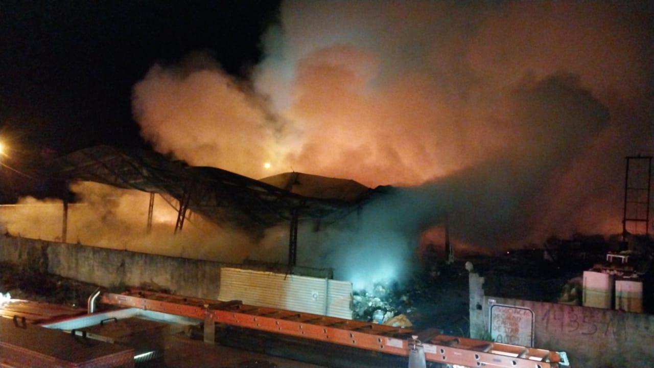 Incêndio de grandes proporções atinge depósito de materiais recicláveis no Samambaial