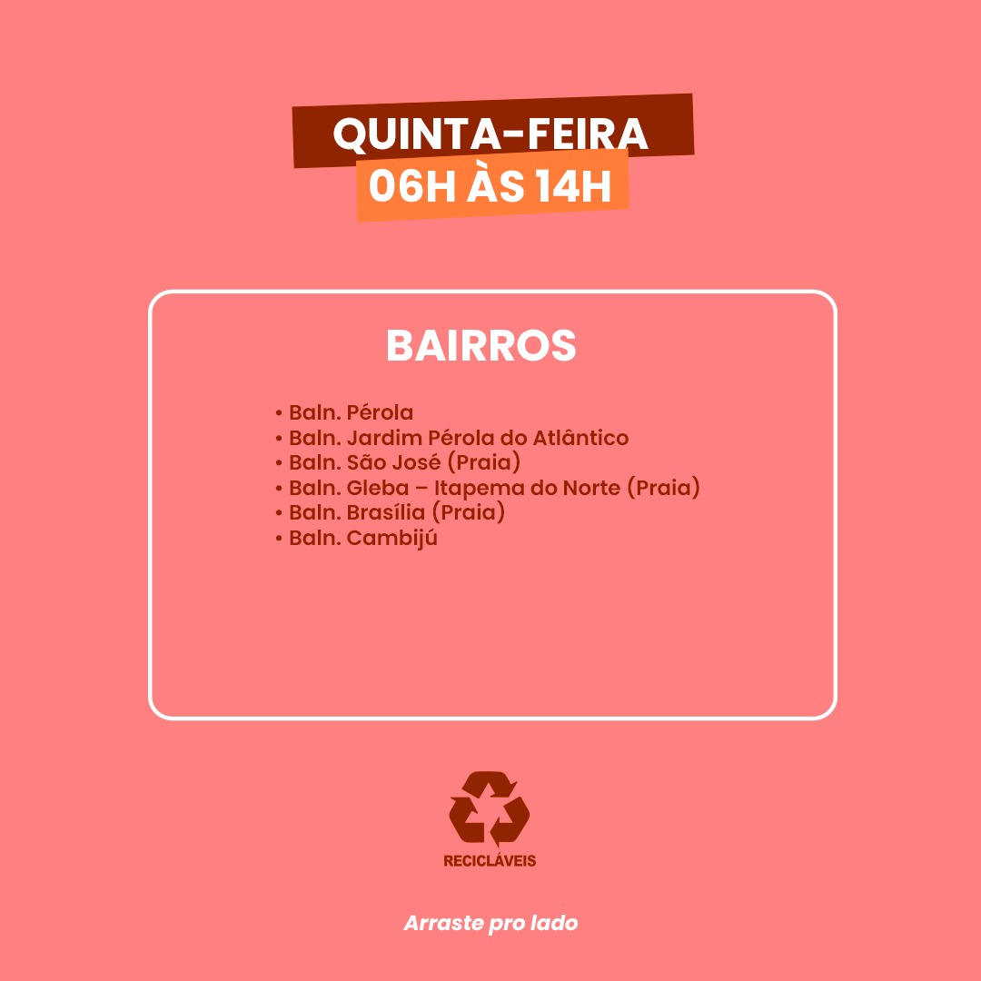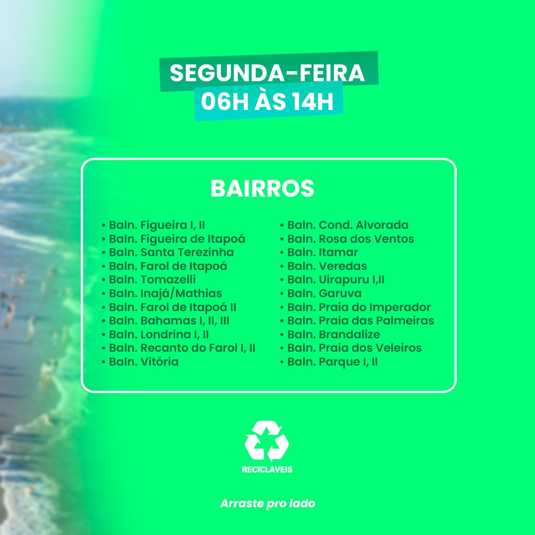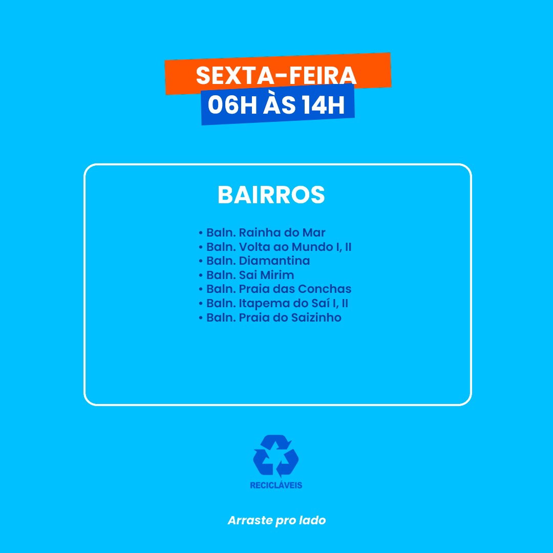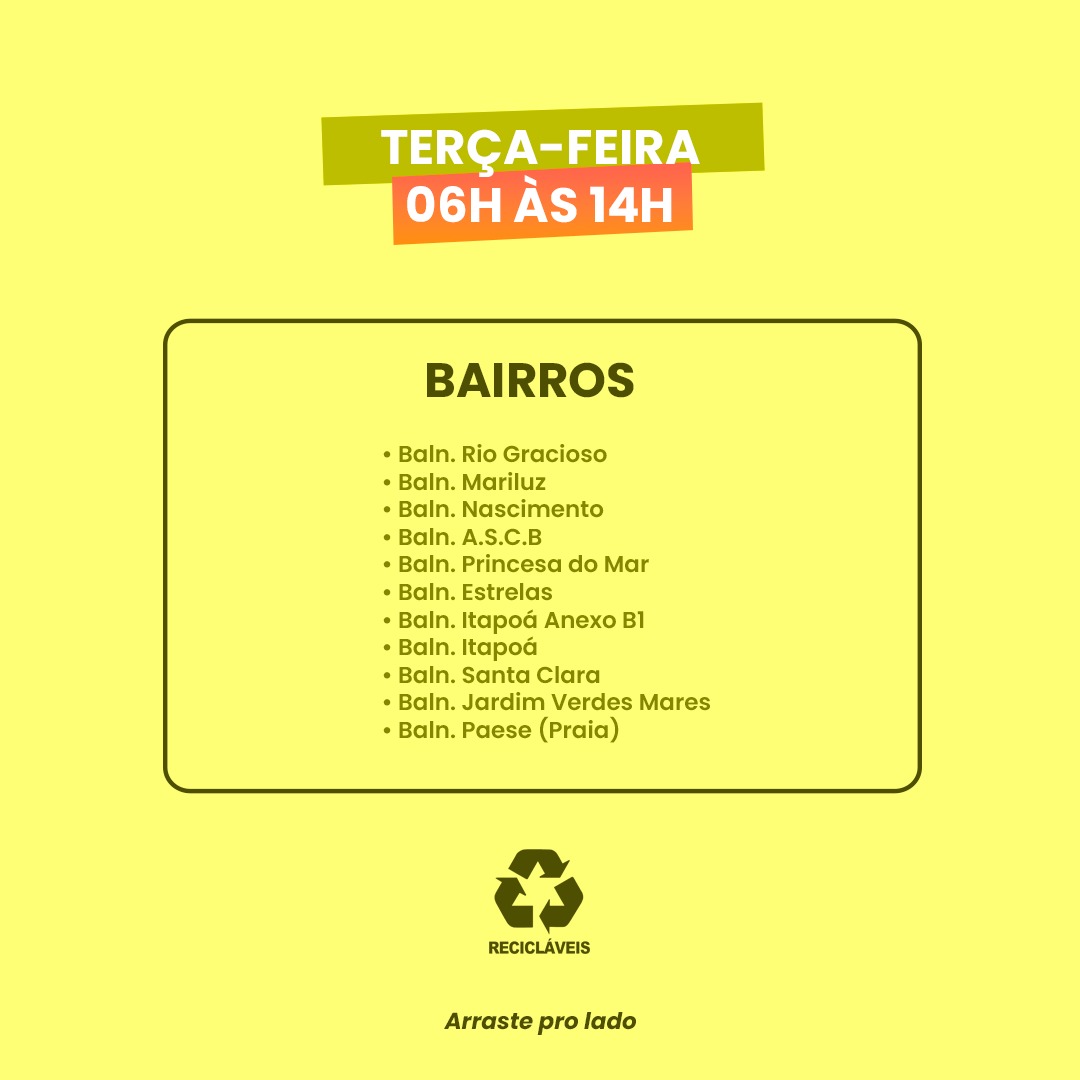 Cheque o horário de coleta seletiva da sua região, nas imagens abaixo, e colabore com a limpeza da cidade.