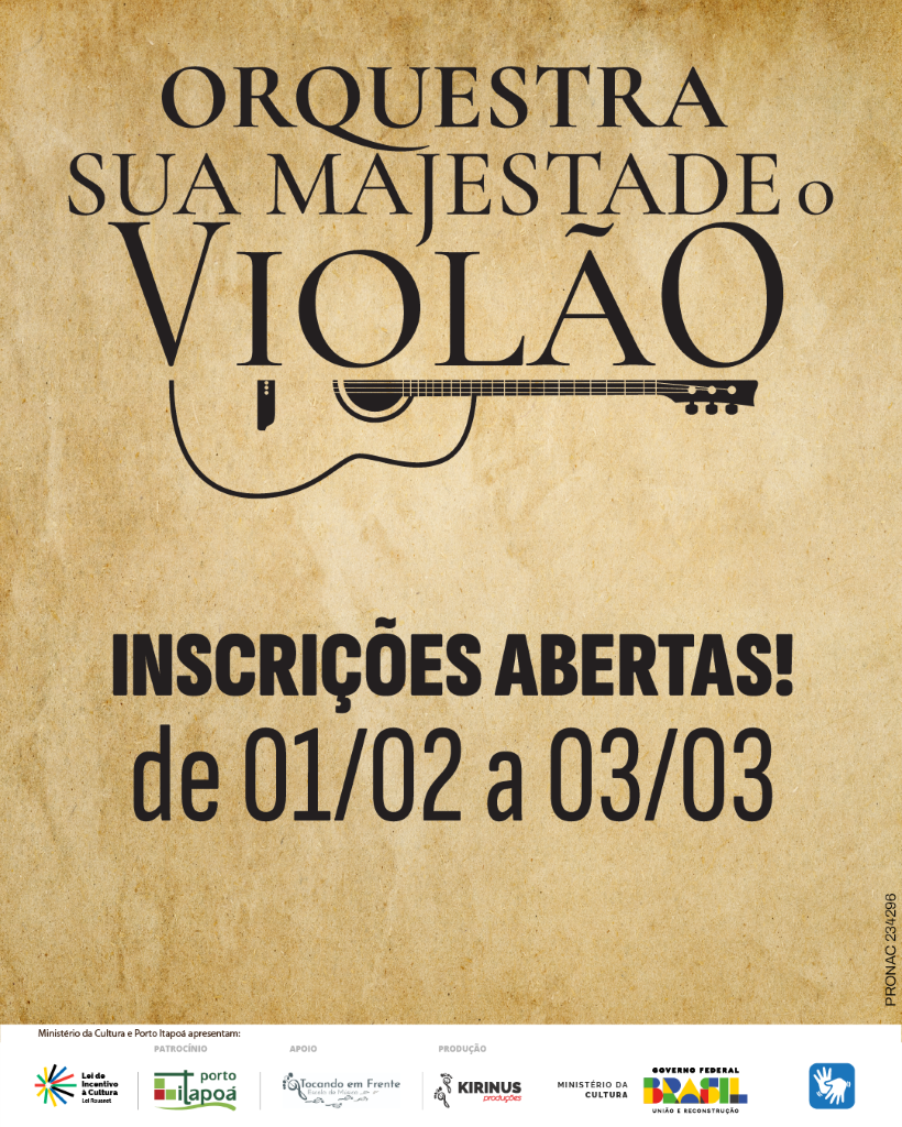 A “Orquestra Sua Majestade o Violão” é um projeto para estudantes já iniciados no violão e com técnica e leitura musical básica (partitura). Os selecionados terão aulas individuais de rendimento gratuitas com o professor Mutti (Helmuth Kirinus) e participarão dos ensaios em grupo com os outros integrantes da Orquestra, já com o repertório das apresentações que realizarão durante o ano.