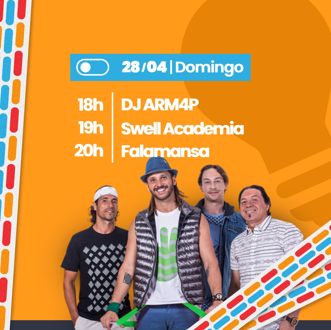 E, para fechar a programação deste final de semana especial, dia 28 de abril, domingo, o palco do evento recebe o show da banda Falamansa (previsto para as 20h). Antes, a partir das 18h, quem toca é o DJ ARM4P.