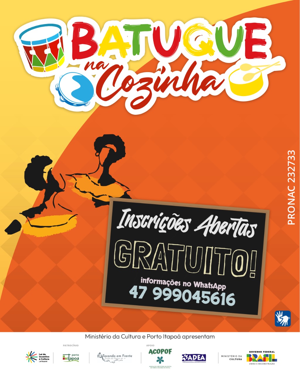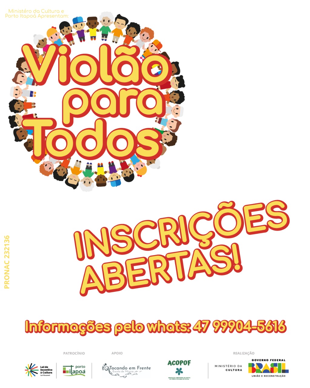 As inscrições estão abertas e as aulas são totalmente gratuitas. Os projetos oferecem instrumento para aqueles que não tenham condição de adquirir o seu próprio. O local das aulas de cavaco é na escola Tocando em Frente, no bairro Itapema do Norte. As aulas de Violão possuem turmas na Escola Tocando em Frente e na Acopof (bairro Pontal). Batuque na Cozinha, na Sede da ADEA, ao lado do Maresia.