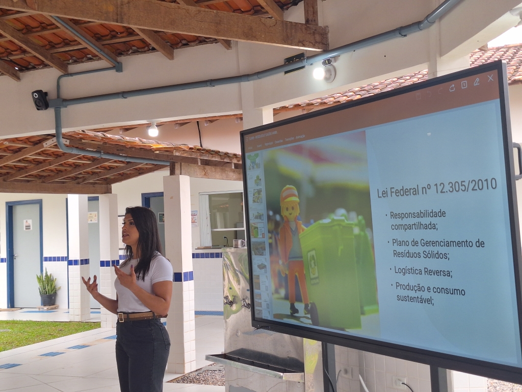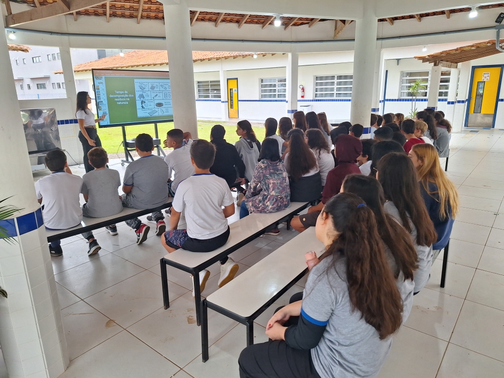 Escola do Pontal recebe palestra sobre a consciência ambiental no descarte de resíduos