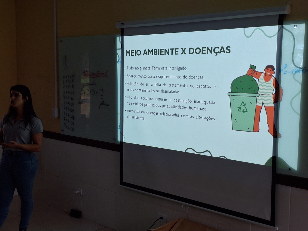 Sob o título “Resíduos Sólidos, Meio Ambiente & Saúde – Conscientização e Ação!”, a profissional da área ambiental explicou a definição e classificação dos resíduos, citou curiosidades e as leis que versam sobre o tema, e detalhou o processo de gerenciamento desses descartes – do momento que sai da casa do usuário do serviço de coleta até a destinação final, passando pelo funcionamento dos aterros sanitários e a erradicação dos famosos “lixões” que, de acordo com a PNRS (Política Nacional de Resíduos Sólidos), deve ocorrer até o final deste ano de 2024. Outro tema de extrema importância abordado nas palestras foi o tempo de decomposição de diversos tipos de resíduos na natureza e os impactos que a destinação inadequada desses pode gerar ao meio ambiente. Além disso, a importância do saneamento e vigilância ambiental também foi citada, assim como a relação da saúde ambiental com diversas doenças.