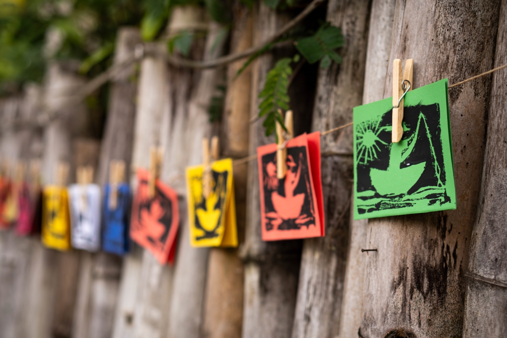 A ilustração conta com desenhos feitos por alunos da Escola Municipal Zózimo Neres do Rosário, que atente aos bairros Pontal, Figueira e Jaguaruna, em Itapoá.