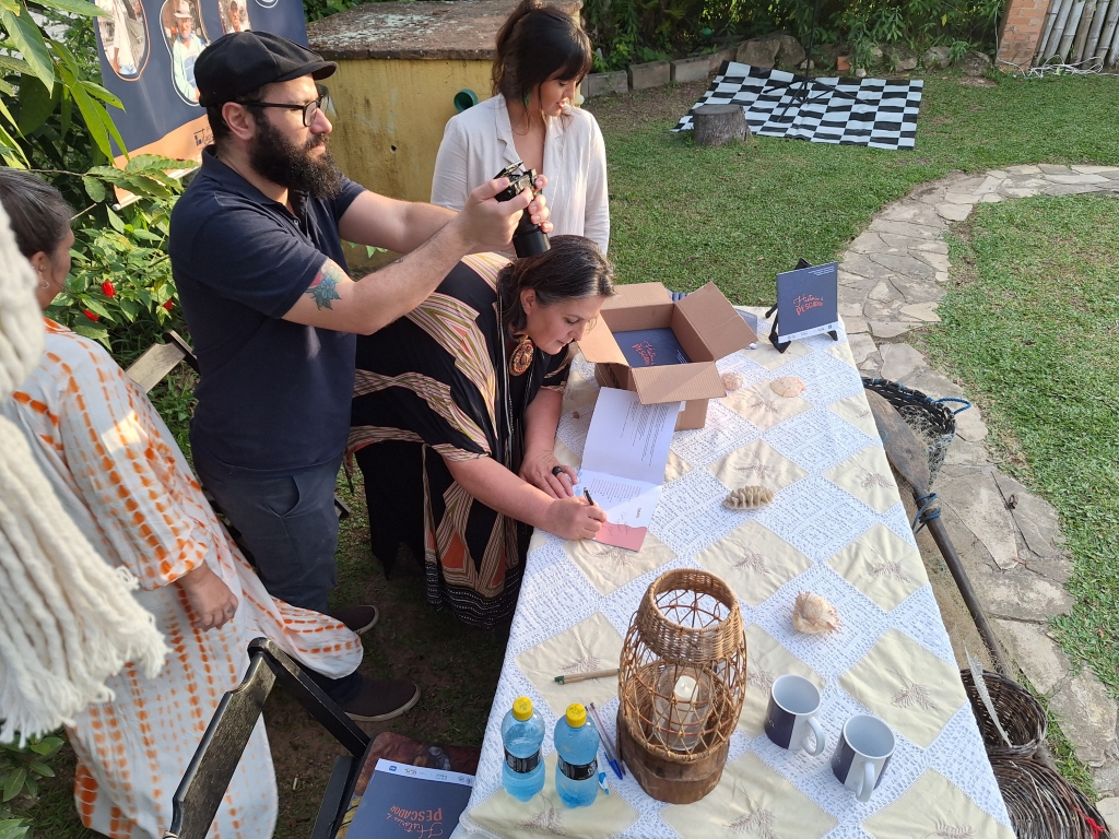Durante todo o evento, as três autoras não escondiam a satisfação de estarem vivendo aquele momento, ressaltando sempre a gratidão aos dez pescadores – sendo duas mulheres – que participaram do livro e foram, segundo elas, os protagonistas da noite. São eles: Acindino, Amazor, Berg, Iolanda, Janete, José, Kalanga, Palá, Paulo e Zequinha.