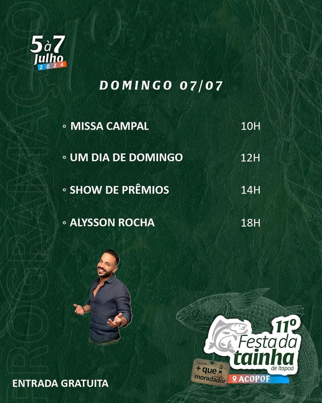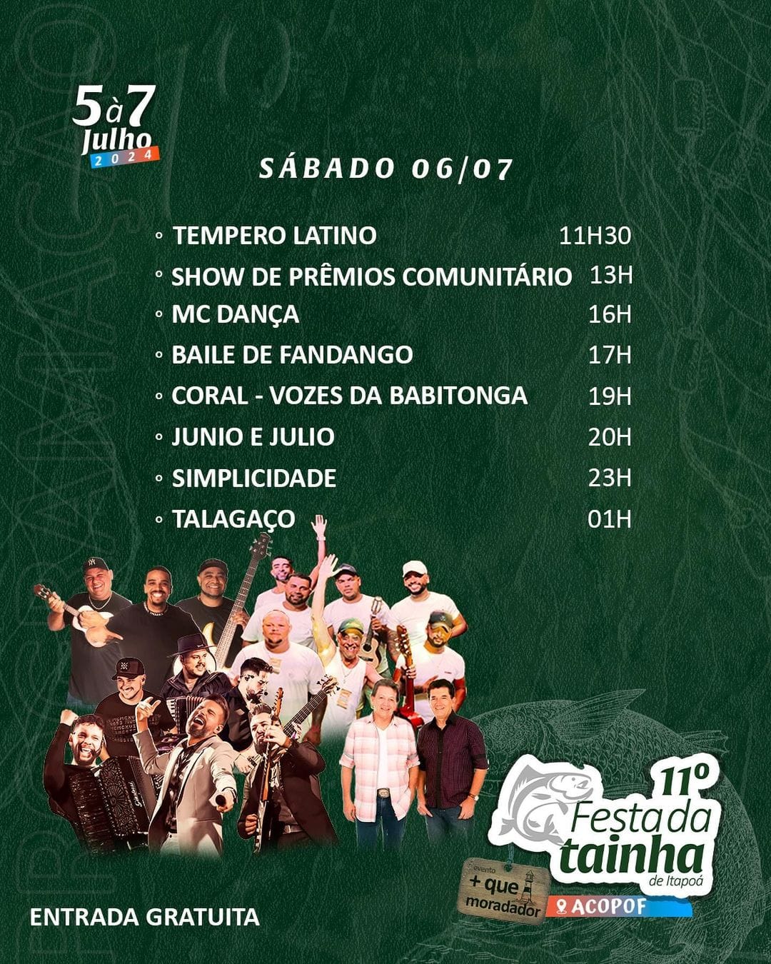 PROGRAMAÇÃO COMPLETA DA 11ª FESTA DA TAINHA DE ITAPOÁ: