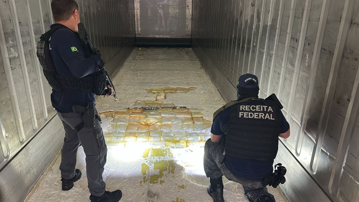 Em todo o ano passado (2024), a Receita Federal localizou e reteve 1.507 quilos de cocaína em cinco inspeções nos portos catarinenses, dos quais 634 quilos e três inspeções no terminal portuário de Itapoá.