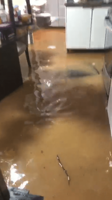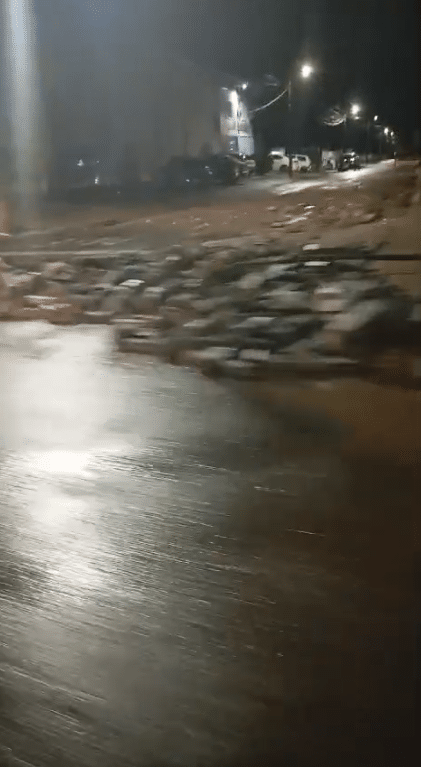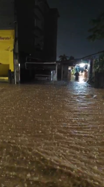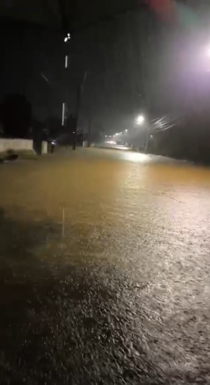 Chuva forte após longo período de calor inunda ruas e casas, assustando moradores de Garuva