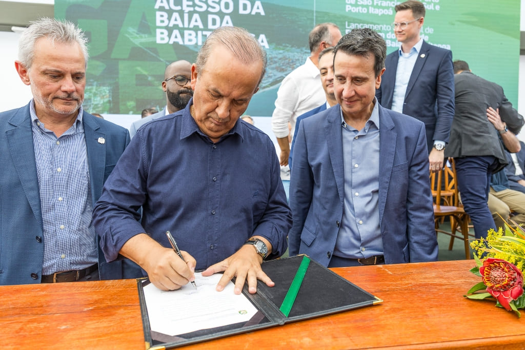 “É uma obra extremamente importante, o complexo portuário da Babitonga responde por 60% das cargas movimentadas pelos portos catarinenses. Nós não tínhamos condições de alavancar recurso próprio pra fazer essa obra. Fomos ao Governo Federal, não obtivemos recursos, e o governador Jorginho Mello determinou que achássemos uma solução com conforto jurídico e rápida. Então nessa parceria única, dada a segurança, dada a confiabilidade da relação que existe entre o Porto Itapoá, que é um porto privado, e o Porto de São Francisco do Sul, que é um porto público comandado pelo Governo do Estado, celebramos essa parceria única”, explicou o presidente do Porto de São Francisco do Sul, Cleverton Vieira.