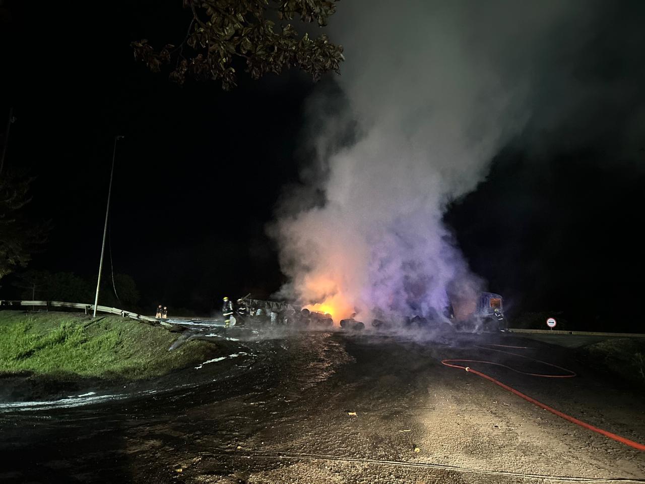 Segundo a Polícia Rodoviária Federal (PRF), a carreta, com placas de Araranguá (SC), trafegava no sentido Sul (pista Curitiba a Florianópolis) quando o fogo começou na parte traseira do veículo, por causas não divulgadas até o fechamento desta matéria. O motorista conseguiu sair ileso antes que as chamas se alastrassem, mas a carga altamente inflamável dificultou o controle do incêndio.