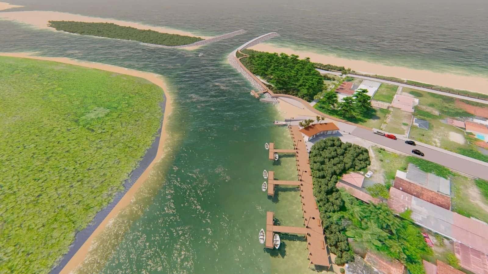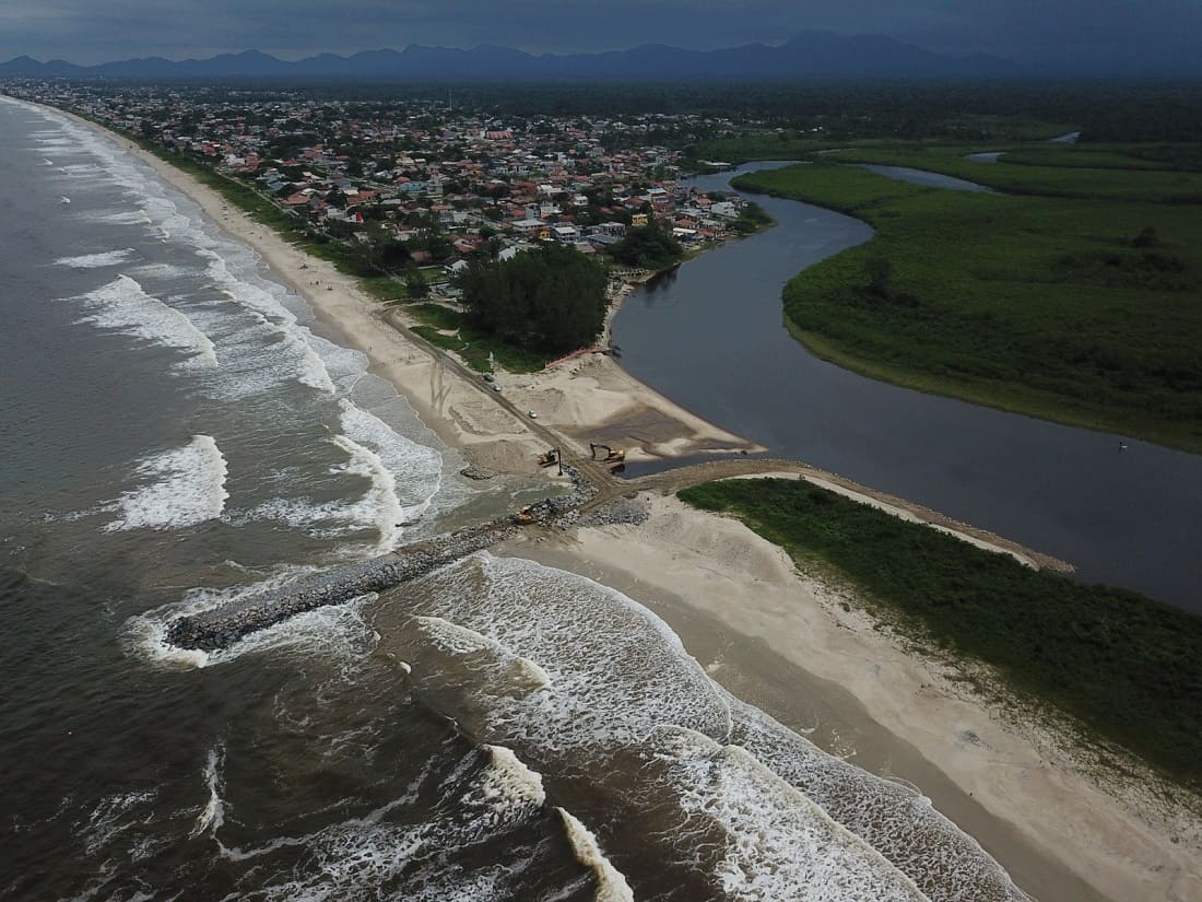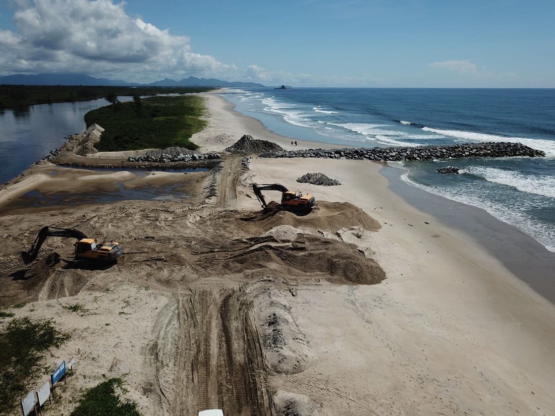 Iniciadas em maio de 2024, após licitação realizada no final de 2023, as obras têm como objetivo permitir a “travessia franca da barra e acesso ao mar e ao rio por embarcações, incrementando e oferecendo maior segurança à pesca artesanal e como apoio ao turismo na região”, conforme destaca a Prefeitura.
