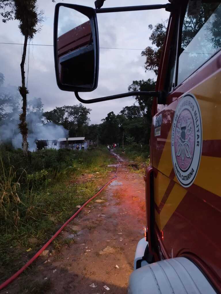 Incêndio atinge residência de madeira em Itapoá e mobiliza Corpo de Bombeiros