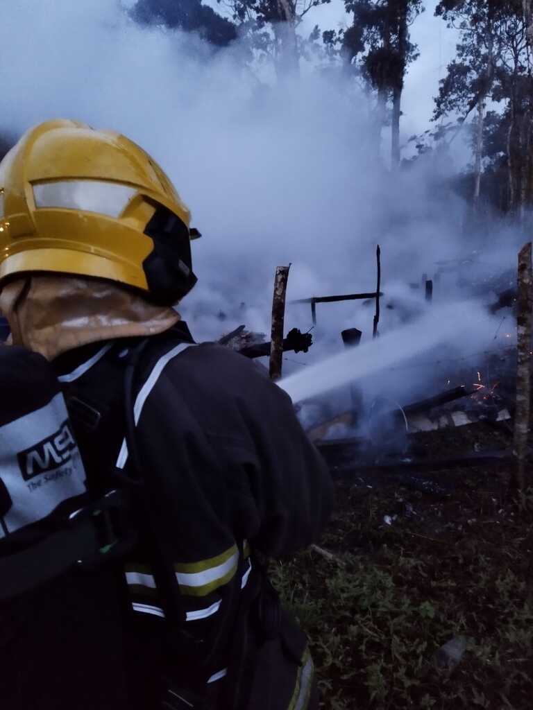 Uma vítima foi retirada por populares antes da chegada das equipes e apresentava sinais de embriaguez; imóvel foi completamente consumido pelas chamas