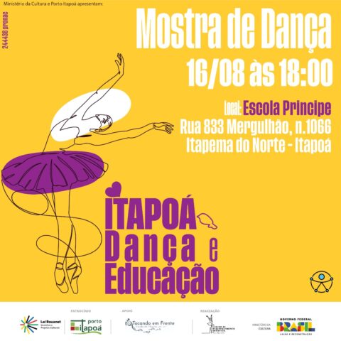 Apresentando o resultado das atividades desenvolvidas, as crianças do projeto realizarão uma “Mostra de Dança” no dia 16 de agosto, às 18h, na Escola Príncipe, localizada na Rua 833 Mergulhão, nº 1066, em Itapema do Norte, Itapoá. O evento, com entrada gratuita, é voltado para pais e familiares, com uma boa expectativa de público, considerando a presença de, no mínimo, um pai ou mãe por criança. A mostra contará com coreografias que representam o que foi trabalhado com os alunos desde novembro do ano passado (2024) e tem como objetivo, além de mostrar o resultado das aulas, proporcionar às crianças um momento de interação entre as turmas, de vivência no palco e a oportunidade de dançar para suas famílias.