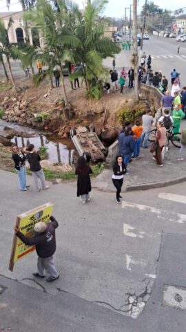 Um acidente de trânsito foi registrado na manhã desta terça-feira, dia 19 de agosto, por volta das 8h, na avenida Celso Ramos, centro de Garuva. A colisão entre dois veículos resultou na queda de um deles, um Renault Megane, no rio. Três pessoas ficaram feridas, mas sem gravidade, e foram prontamente atendidas pelo Corpo de Bombeiros Militar.