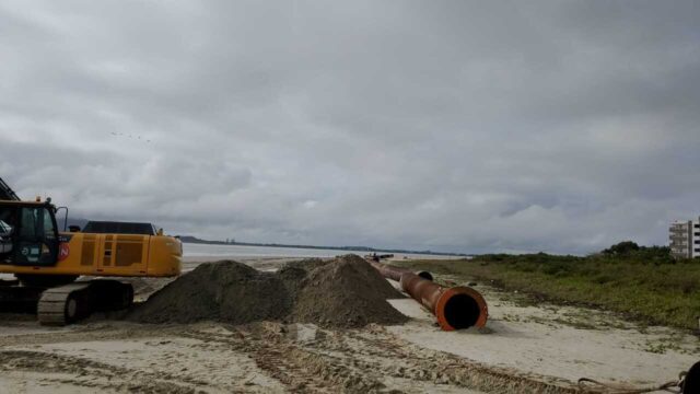Megaobra costeira em Itapoá inicia fase de montagem da tubulação para alargamento da praia