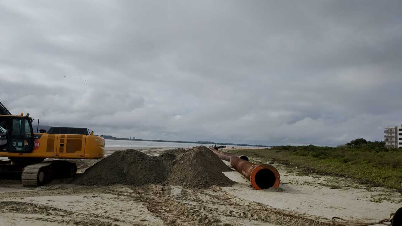 As primeiras tubulações estão sendo posicionadas na Praia do Pontal, entre as ruas 2440 Itaitaba e 2520 Cavatã. Elas terão extensão de 400 metros e serão responsáveis por transportar a areia retirada do fundo da Baía da Babitonga até a faixa de areia da orla.