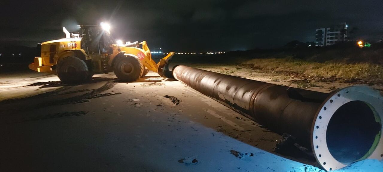 A montagem da tubulação que permitirá o alargamento da orla de Itapoá – considerada a maior intervenção do tipo já realizada no Brasil – começou neste sábado, dia 11 de outubro, marcando o início prático desta megaobra de dragagem e recuperação costeira. O projeto prevê ampliar em, pelo menos, 30 metros a faixa de areia em cerca de 10 quilômetros de praia, entre a região da Figueira e o Balneário Princesa do Mar.