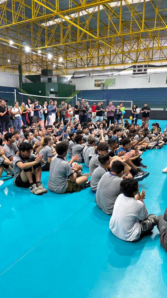 Este domingo, dia 12 de outubro, foi inesquecível para os alunos das escolas João Monteiro Cabral e Zózimo Neres, de Itapoá. As crianças e adolescentes, com idades entre 8 e 15 anos, foram até Joinville para participar do 1º Festival Dia das Crianças Joinville Vôlei, realizado na quadra da Univille. O encontro reuniu estudantes dos diversos núcleos do projeto social Novos Ventos, em um dia repleto de integração, diversão e aprendizado.