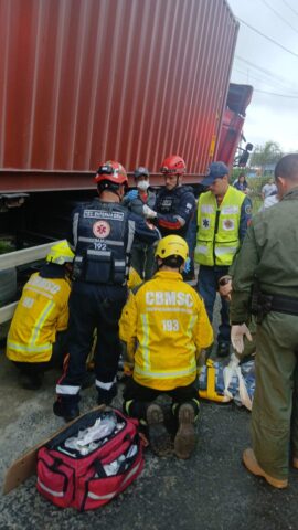 O atendimento foi realizado pelas guarnições da ambulância de socorro e do caminhão de resgate do quartel de Itapoá.