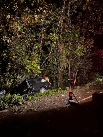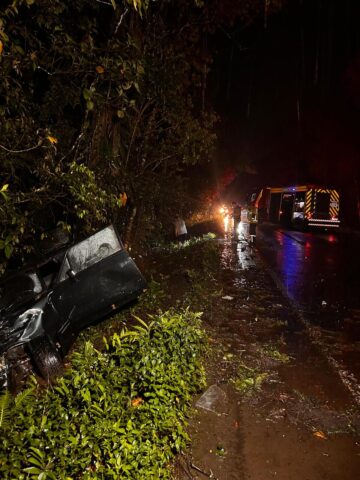 Duas pessoas ficam feridas após carro antigo sair da pista e colidir com árvore em Garuva