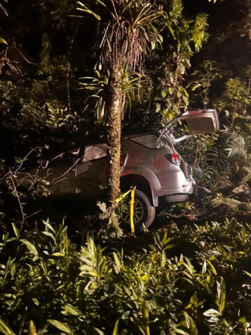 Pouco à frente, às margens da rodovia, os bombeiros localizaram um Toyota Hilux SW4 prata, que seguia no sentido Itapoá – Garuva. O motorista, identificado pelas iniciais A.A.B., também estava fora do carro, consciente, orientado e caminhando pelo local. Ele disse que se sentia bem e recusou ser levado à UPA de Garuva.