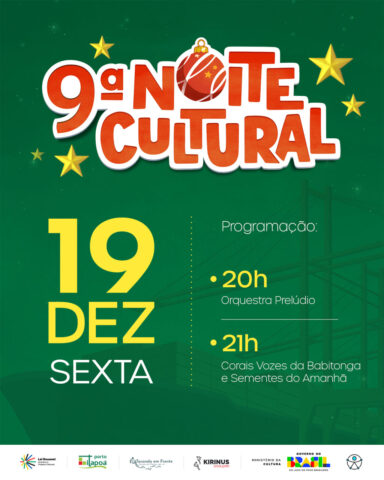 Serão três noites consecutivas de espetáculos gratuitos, reunindo o melhor da música instrumental, do canto coral, do teatro e da dança. Mais do que apresentações artísticas, a 9ª Noite Cultural é uma celebração dos talentos locais e regionais, oferecendo ao público uma estrutura impecável e apresentações de alto nível técnico e artístico.