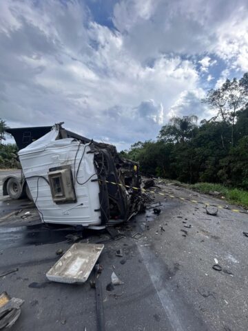 O outro motorista envolvido, que conduzia a carreta, foi encontrado andando pela cena. Apesar da gravidade do impacto entre os veículos pesados, ele estava consciente e orientado, recusando atendimento médico e encaminhamento ao hospital.