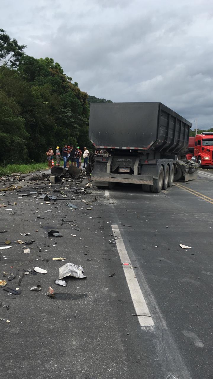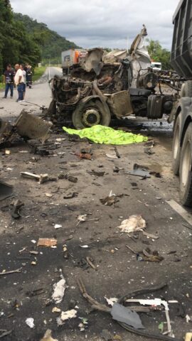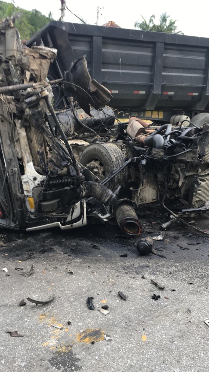 A colisão envolveu uma carreta de nove eixos e um caminhão caçamba. Com o impacto, o condutor do caminhão caçamba, identificado como Irineu Marcelo Alves, não resistiu aos ferimentos e teve o óbito confirmado ainda no local. Quando o trem de socorro chegou, o corpo da vítima já havia sido coberto por populares.
