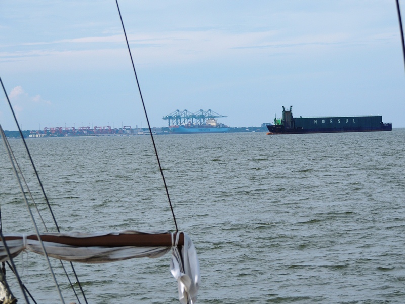 Navio sendo rebocado ao Porto Itapoá.