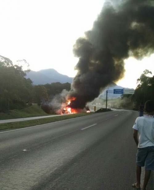 Era por volta das 17h00min, quando a carreta bitrem, que vinha de Campinas (SP) com destino a Porto Alegre (RS), desceu a serra começou a incendiar dois quilômetros após passar a praça de pedágio de Garuva (no km 04 da BR-101).