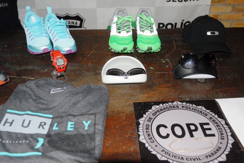 Foi recuperado, pela Polícia, o material de pesca roubado. Além disso, diversos produtos comprados, como tênis, camisetas, bonés, óculos, relógios e uma corrente de ouro foram apreendidos.